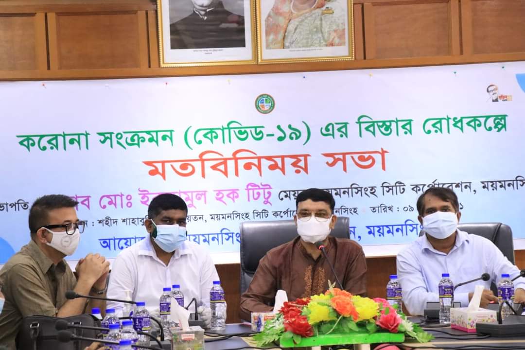আমরা নিজেরা আরো সচেতন হলে বর্তমান পরিস্থিতি সৃষ্টি হতো না। তিনি আরো বলেন, জেলা প্রশাসন, পুলিশ ও অন্যান্য দপ্তরের সমন্বয়ে আমরা সিটির নাগরিকদের সুরক্ষিত রাখতে কাজ করে যাচ্ছি। ডেল্টা ভেরিয়েন্ট মোকাবেলায় আরো তৎপর হয়ে কাজ করতে হবে জন্য। মেয়র করোনা সংক্রমণ রোধে ওয়ার্ড পর্যায়ে নিয়োগকৃত বিভিন্ন সরকারী দপ্তরের কর্মকর্তাদের নিয়ে কাউন্সিলরগণকে আরো আন্তরিকভাবে কাজ করার আহবান জানান। কাউন্সিলরগণের উদ্দেশ্যে তিনি বলেন, স্বেচ্ছাসেবী কমিটি গঠন করে হোম আইসোলেশন নিশ্চিত করতে হবে, সকলের মাস্ক পরা নিশ্চিত করতে হবে এবং মানুষের অকারণ বের নিরুৎসাহিত করতে হবে। হোম আইসোলেশনে কেউ অসুবিধায় থাকলে প্রয়োজনে তার সকল সাপোর্ট আমরা দেব। তিনি আরো বলেন, একটি মহল লকডাউনকে কেন্দ্র করে নানা অপপ্রচার চালাচ্ছে। একসময় করোনা ভ্যাকসিনকে নিয়েও তারা অপপ্রচার চালিয়েছিল। কিন্তু ভ্যাকসিনের কার্যকারিতা আজ প্রমাণিত। লকডাউনে সাহায্যের প্রয়োজন এমন প্রকৃত দাবিদার খুঁজে বের করতে হবে। মাননীয় প্রধানমন্ত্রীর নেতৃত্বে এই মহামারীতে দেশের একজন মানুষও না খেয়ে মারা যায়নি, আর ভবিষ্যতেও মারা যাবে না। জেলা প্রশাসক মোহাম্মদ এনামুল হক বলেন, সরকারি কর্মকর্তা ও জনপ্রতিনিধিদের সমন্বয়ে করোনা প্রতিরোধে আমাদের আন্তরিকভাবে কাজ করতে হবে। প্রত্যেক ওয়ার্ড হবে করোনা মোকাবেলা সংক্রান্ত কাজের কেন্দ্রবিন্দু। এ সময় জেলা প্রশাসক, করোনা সংক্রান্ত যে কোন সহযোগিতায় ৩৩৩ এ কল করার জন্য অনুরোধ জানান। পুলিশ সুপার মোহাঃ আহমার উজ্জামান তাঁর বক্তব্যে করোনা সংক্রমণ রোধে সকল কর্মকাণ্ডে কমিউনিটির অন্তর্ভুক্তির প্রতি গুরুত্বারোপ করেন। অনুষ্ঠানের সঞ্চালন করেন ময়মনসিংহ সিটি কর্পোরেশনের প্রধান নির্বাহী কর্মকর্তা মোহাম্মদ আনোয়ার হোসেন। এ অনুষ্ঠানে সিভিল সার্জন ডাঃ মোহাম্মদ নজরুল ইসলাম, স্থানীয় সরকারের উপপরিচালক মোঃ গালিব খান, বিভিন্ন সরকারী দপ্তরের ঊর্ধ্বতন কর্মকর্তাবৃন্দ, সিটি কর্পোরেশনের প্যানেল মেয়র ০১ মো আসিফ হোসেন ডন ও অন্যান্য কাউন্সিলরবৃন্দ, সিটি কর্পোরেশনের অন্যান্য কর্মকর্তাবৃন্দ, বিশ্ব স্বাস্থ্য সংস্থা প্রতিনিধি ডাঃ পঙ্কজ ভুইয়া, প্রিন্ট ও ইলেকট্রনিক মিডিয়ার সাংবাদিকবৃন্দ প্রমুখ উপস্থিত ছিলেন।