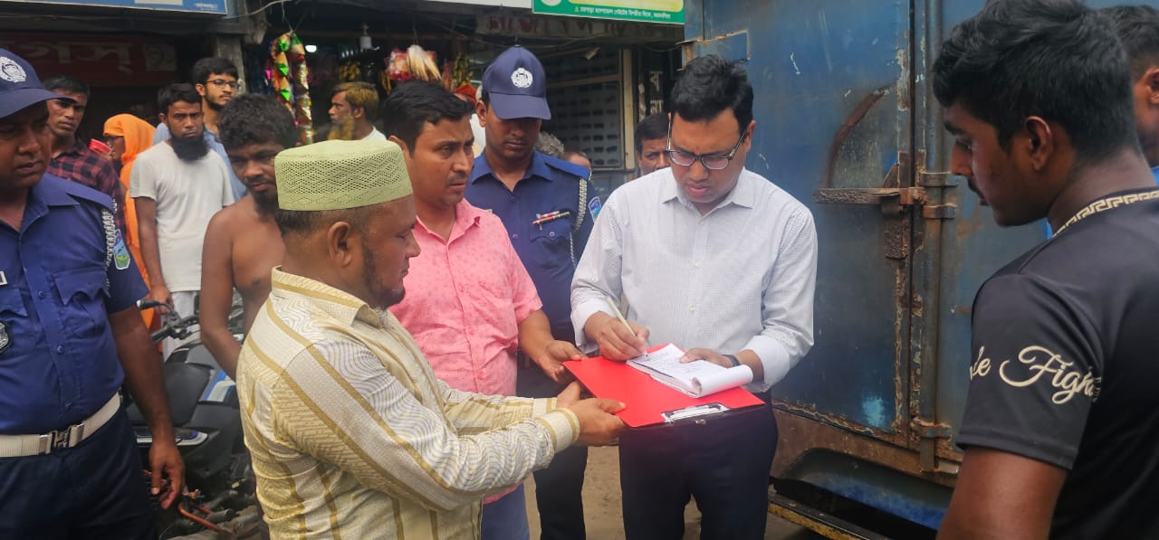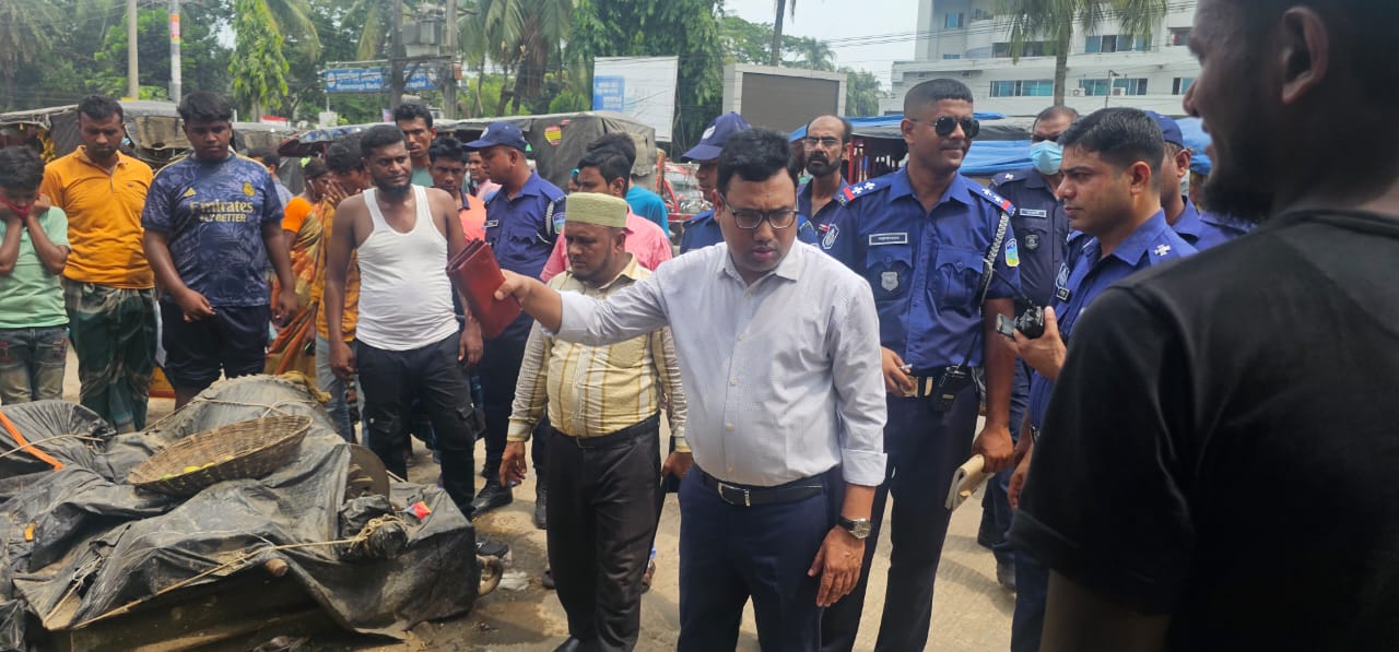 চরপাড়ায় ফুটপাত দখল উচ্ছেদে মসিকের অভিযান