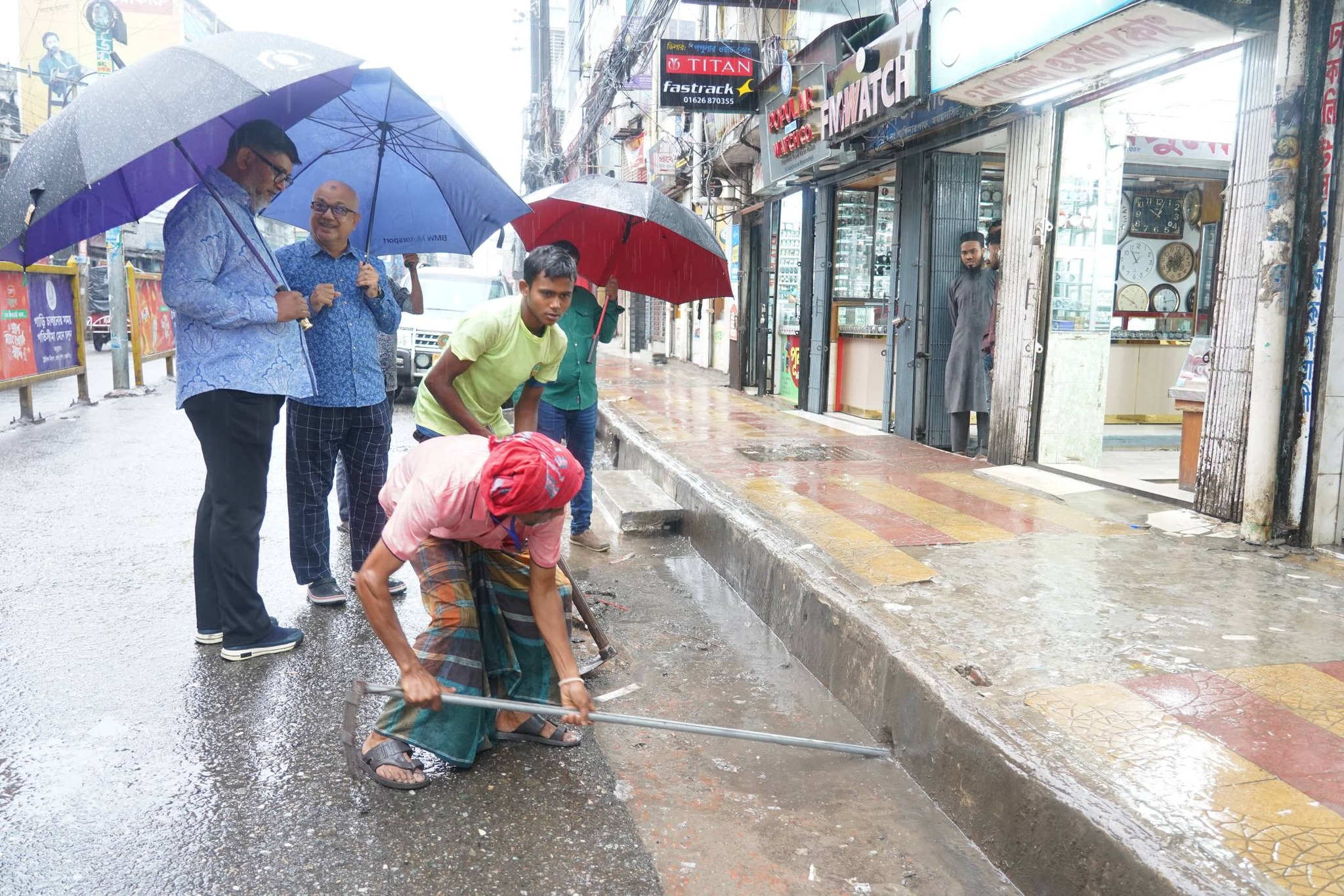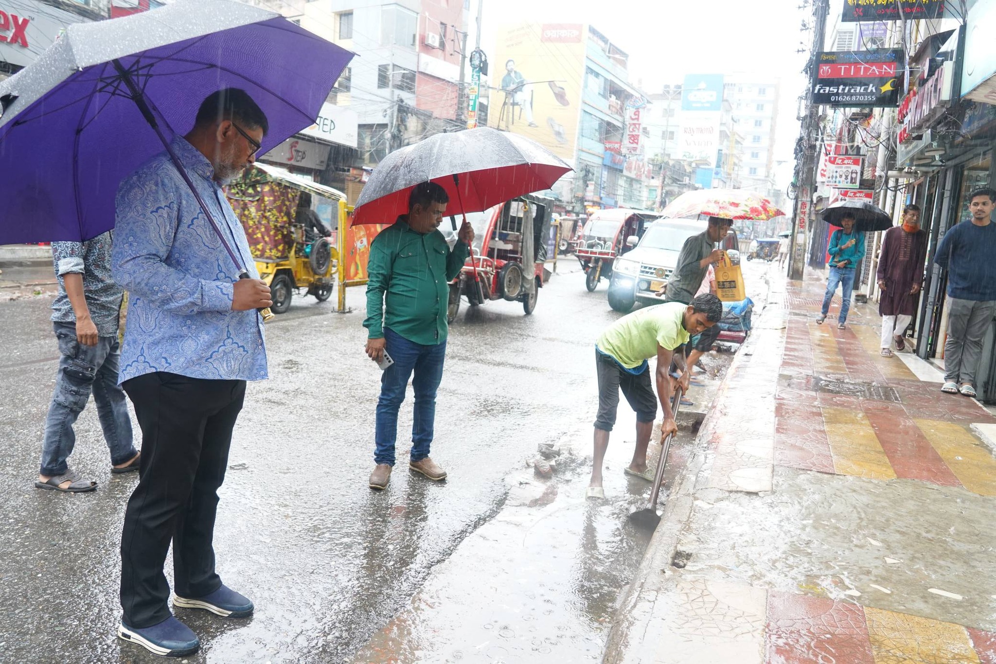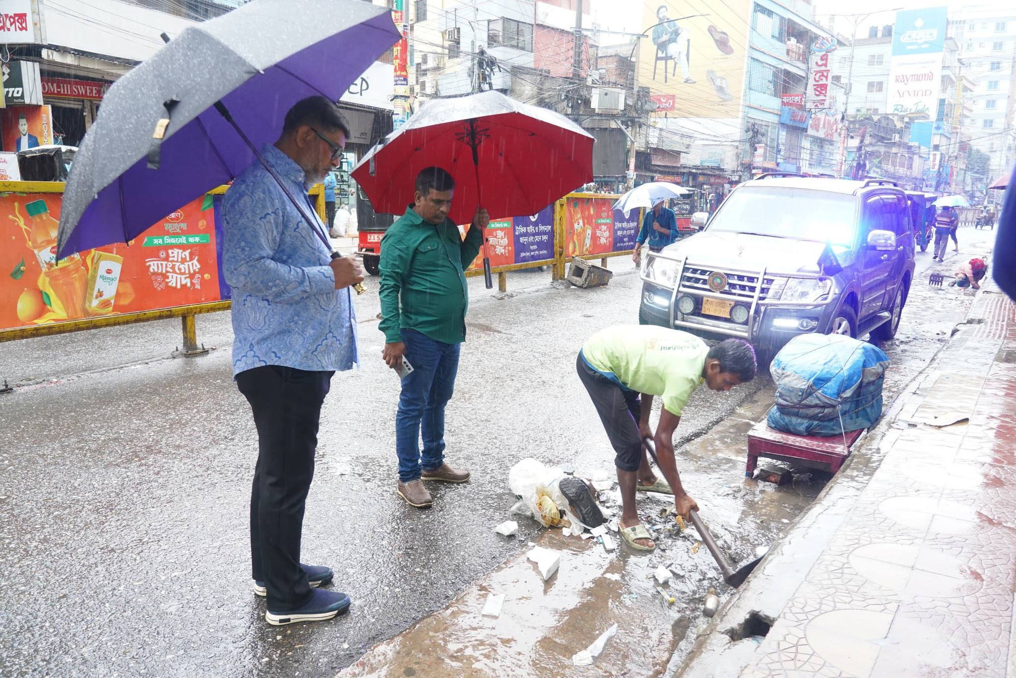 বৃষ্টির মধ্যে রাস্তায় ঘুরে ঘুরে জলবদ্ধতা নিয়ন্ত্রণে ড্রেনেজে ব্যাবস্থা পর্যবেক্ষণ করছেন ময়মনসিংহ সিটি কর্পোরেশনের মাননীয় প্রশাসক জনাব মোঃ রুকুনোজ্জামান রোকন মহোদয়