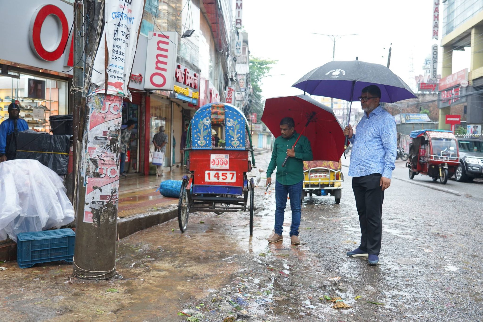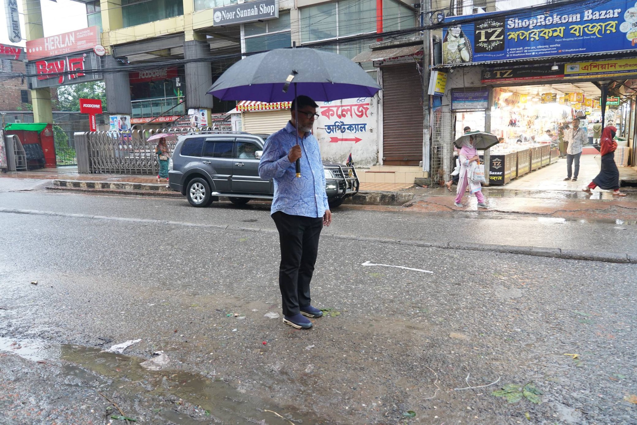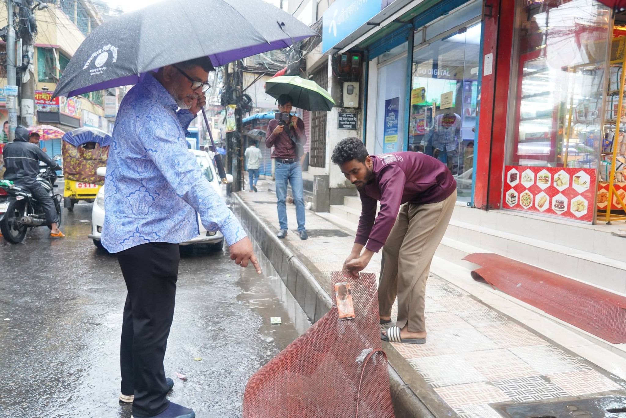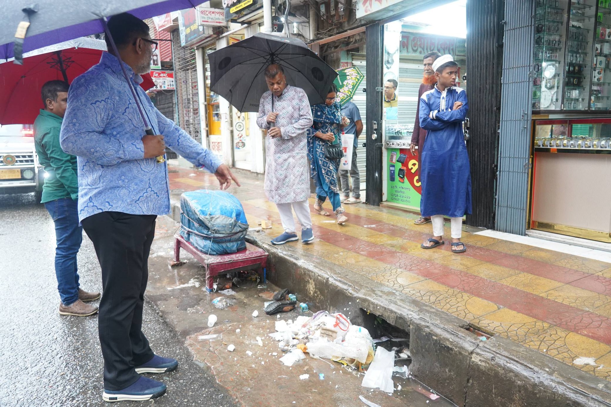 বৃষ্টির মধ্যে রাস্তায় ঘুরে ঘুরে জলবদ্ধতা নিয়ন্ত্রণে ড্রেনেজে ব্যাবস্থা পর্যবেক্ষণ করছেন ময়মনসিংহ সিটি কর্পোরেশনের মাননীয় প্রশাসক জনাব মোঃ রুকুনোজ্জামান রোকন মহোদয়