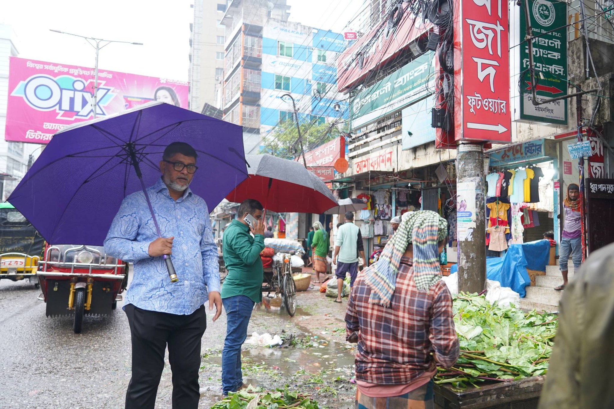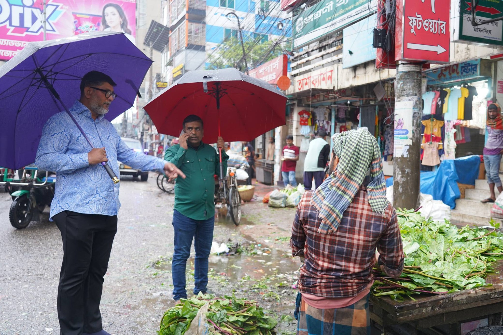 বৃষ্টির মধ্যে রাস্তায় ঘুরে ঘুরে জলবদ্ধতা নিয়ন্ত্রণে ড্রেনেজে ব্যাবস্থা পর্যবেক্ষণ করছেন ময়মনসিংহ সিটি কর্পোরেশনের মাননীয় প্রশাসক জনাব মোঃ রুকুনোজ্জামান রোকন মহোদয়।