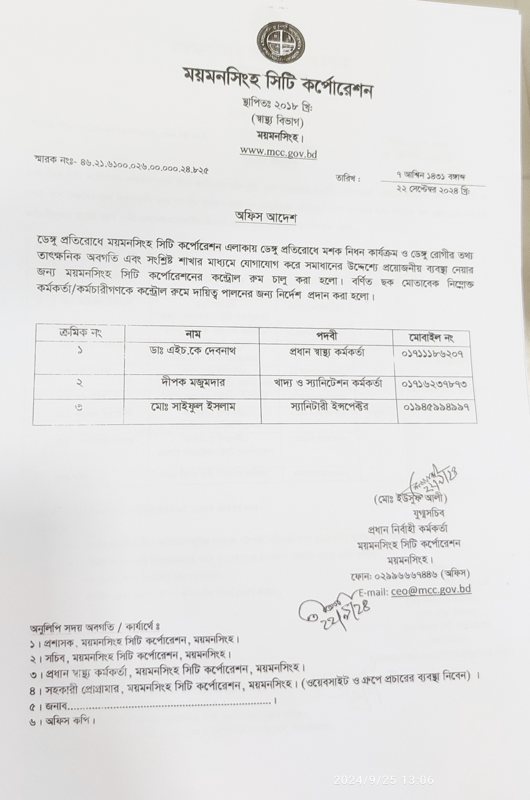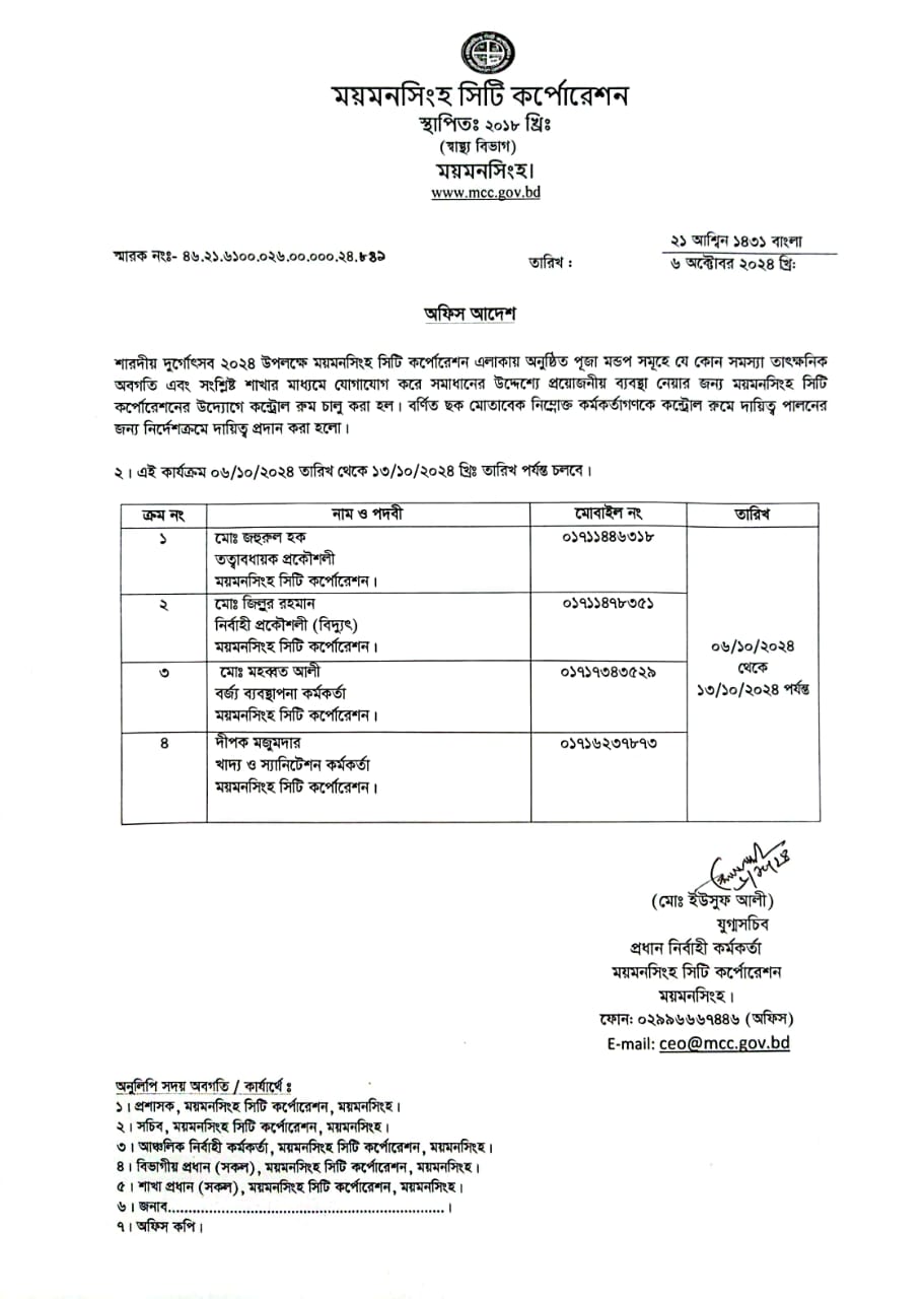 | ২ | অফিস আদেশ (০৬/১০/২০২৪) | ০৬-১০-২০২৪ | দেখুন | ||