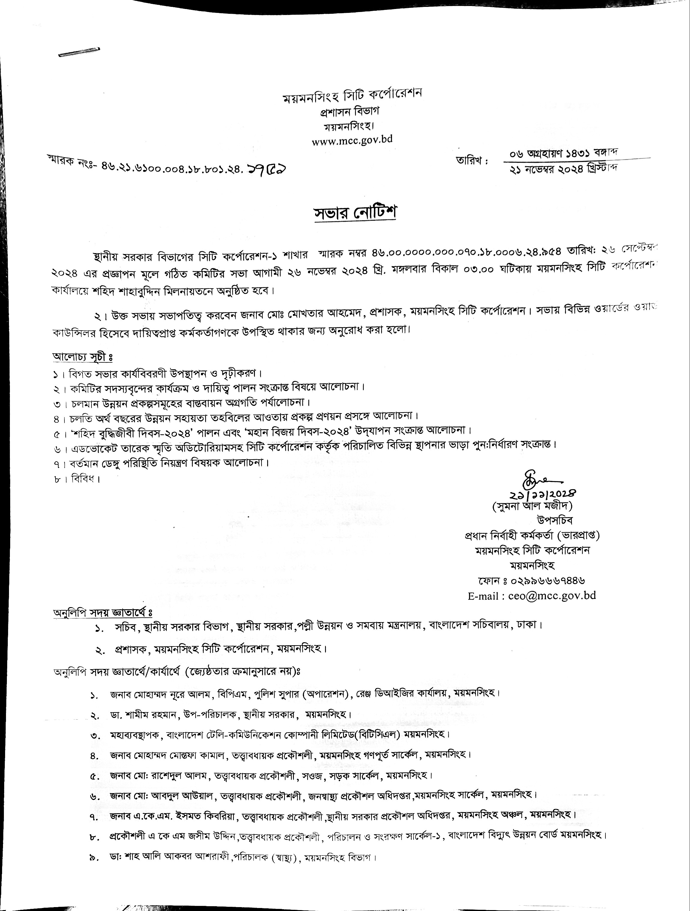 | ১ | সভার নোটিশ (২১/১১/২০২৪) | ২৪-১১-২০২৪ | দেখুন | ||